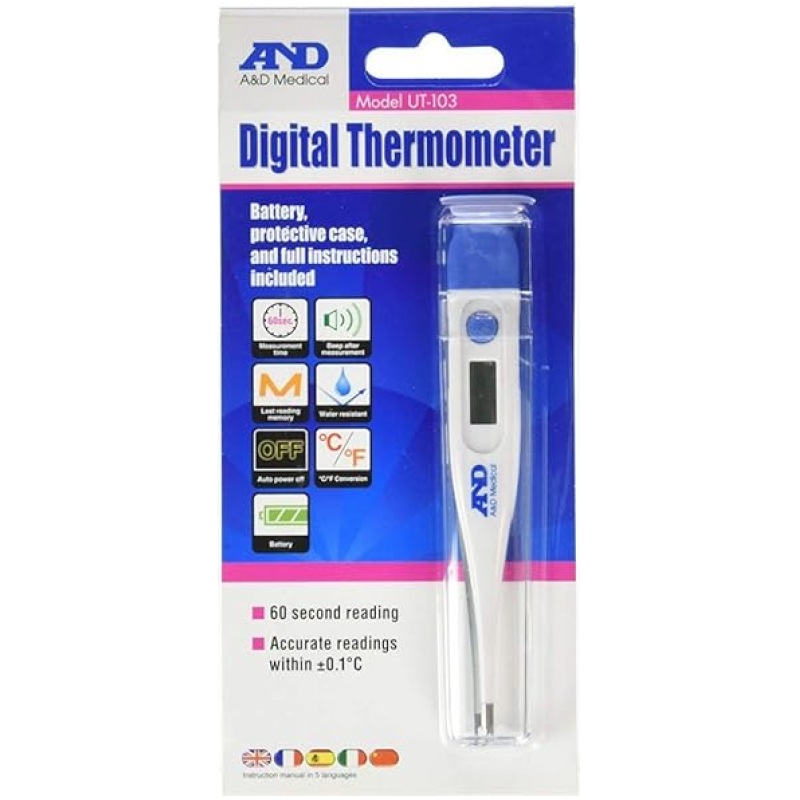 - Digital fever thermometer for oral, axillary or rectal use