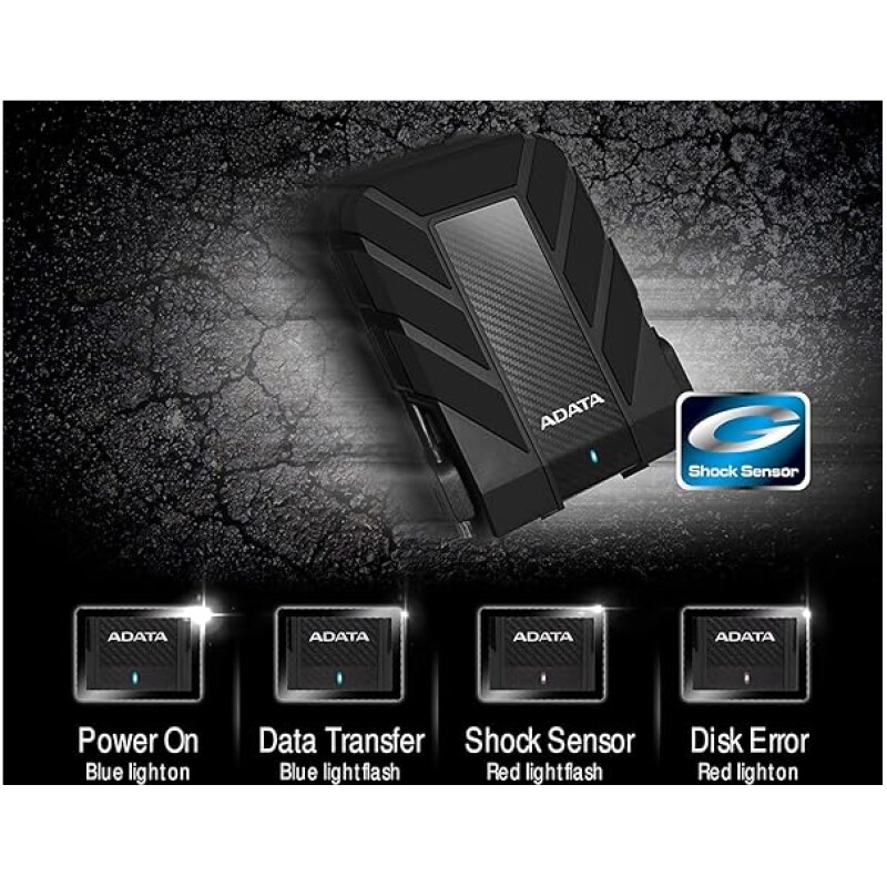 ADATA external storage expertise results in a drive with total dust-tight protection and a submarine-like ability to survive water. The HD710 Pro is tested for 60 minutes in 2 meters of water – that’s more than IEC IPX8 requirements! Prepare to dive? *Water protection applies in full only when the USB port cover is firmly closed