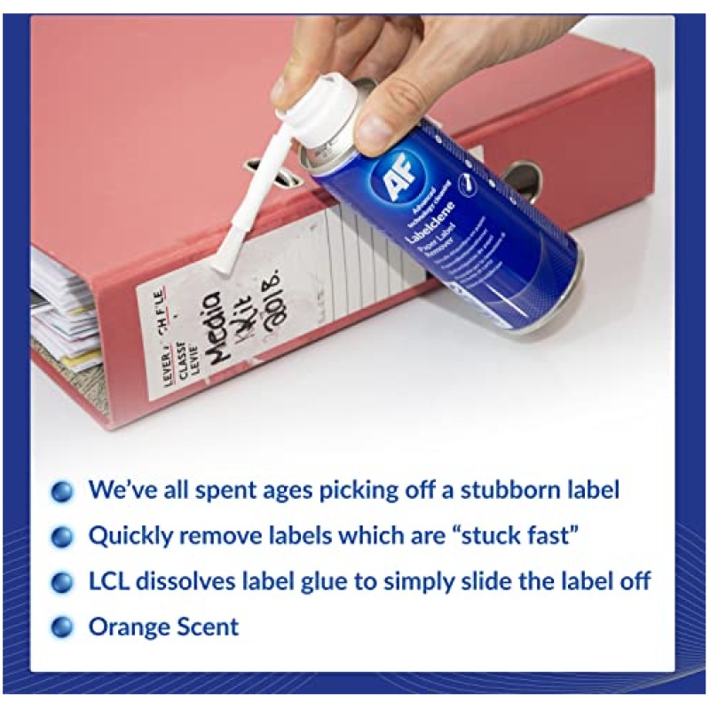 AF Labelclene Label and Sticky Stuff Remover Spray with Brush – Dissolves and Removes Sticky Label & Tape Glue Adhesives, Scuff Marks & Wax , 200ml