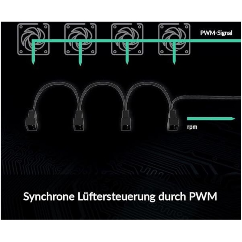 - SYNCHRONOUS FAN CONTROL: Your set PWM signal is passed on synchronously to all fans connected to the PST Cable. The RPM of the first fan base are read out and returned to your system