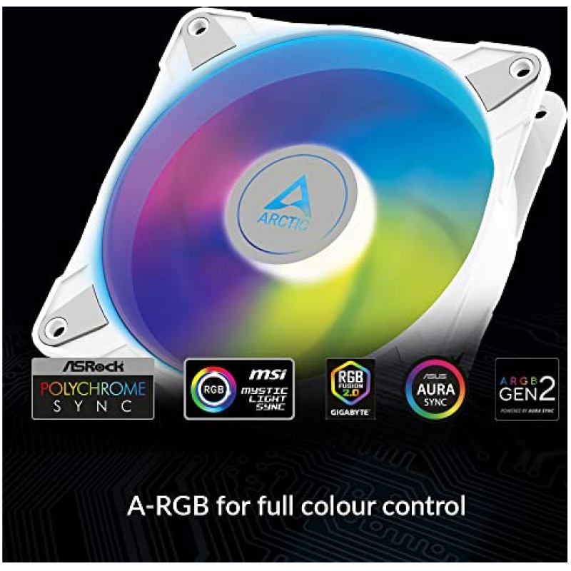 ARCTIC P12 PWM PST A-RGB – PC Fan, 120mm Fan, PC Case Fan, Optimized for static pressure, Semi-passive: 200-2000 rpm