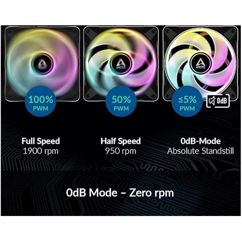 - 200-1900 RPM (0 RPM <5 %): Thanks to the 4-pin connector, the fan speed can be controlled via PWM PST. This keeps noise to a minimum while at the same time ensuring maximum cooling performance