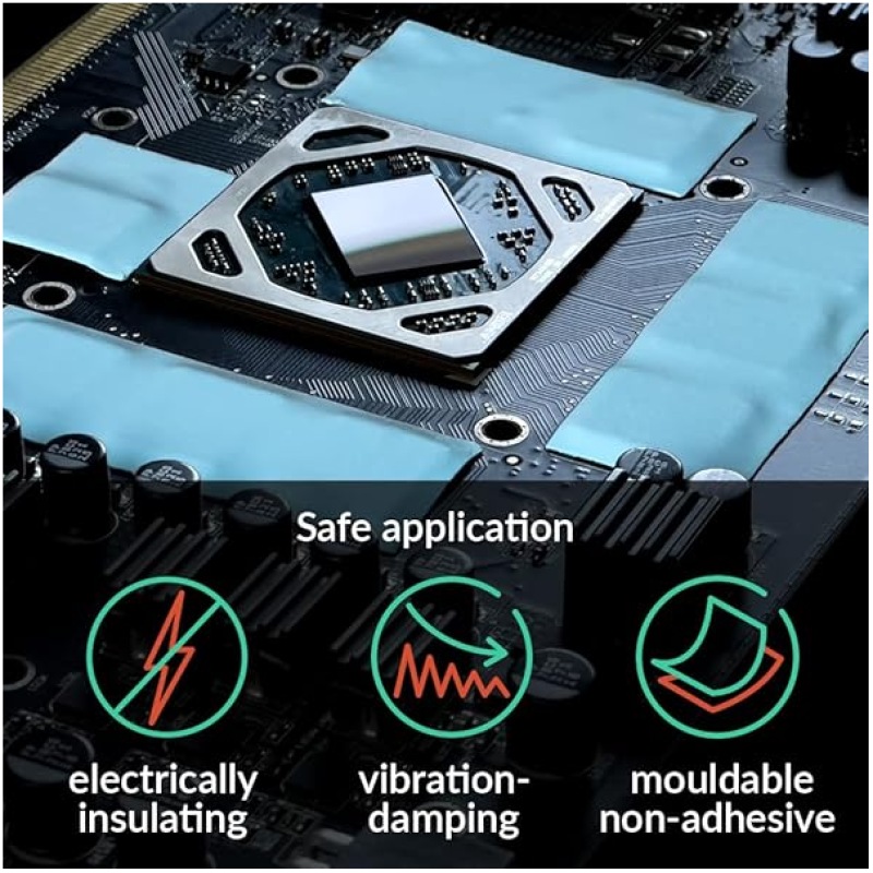 - VERSATILE APPLICATIONS: Heat-conducting, vibration-damping, mouldable, electrically insulating – can be easily cut to size. Ideal for RAM, chipset, IC in PC, laptop, console, graphic cards
