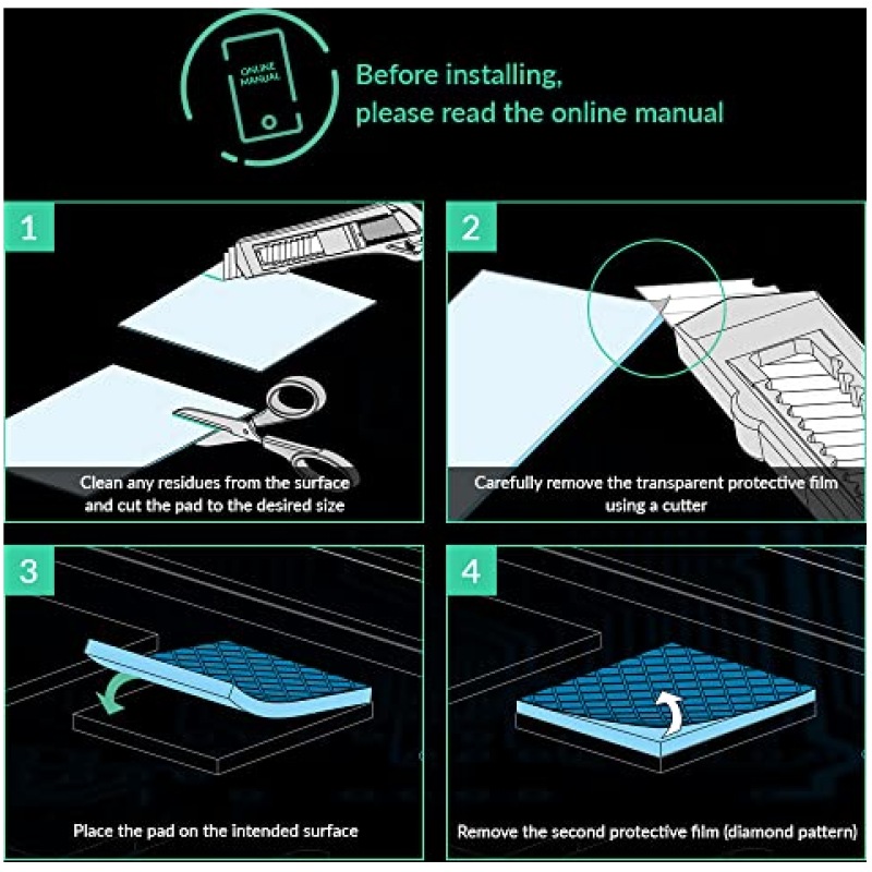 - PLEASE NOTE: Due to the extremely low hardness of thermally conductive pads, a more demanding installation is to be expected. Please refer to the User Manual