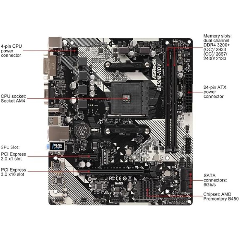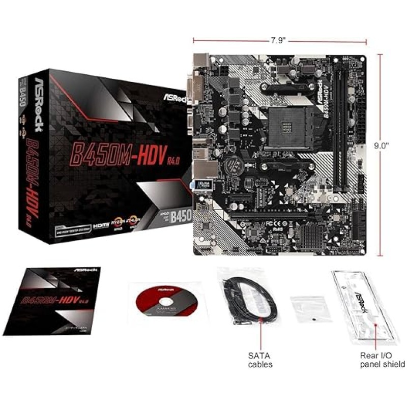 ASRock B450M-HDV R4.0 Socket AM4/ AMD Promontory B450/ DDR4/ SATA3&USB3.1/ M.2/ A&GbE/MicroATX Motherboard