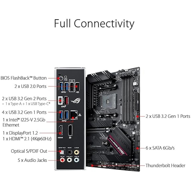 - Connectivity for gaming: ready for PCIe0-ready, dual M.2, USB 3.2 Gen 2 Type-C plus HDMITM 2.1 and DisplayPort 1.2 output support. Seamless networking: Intel 2.5Gb Ethernet with ASUS LANGuard