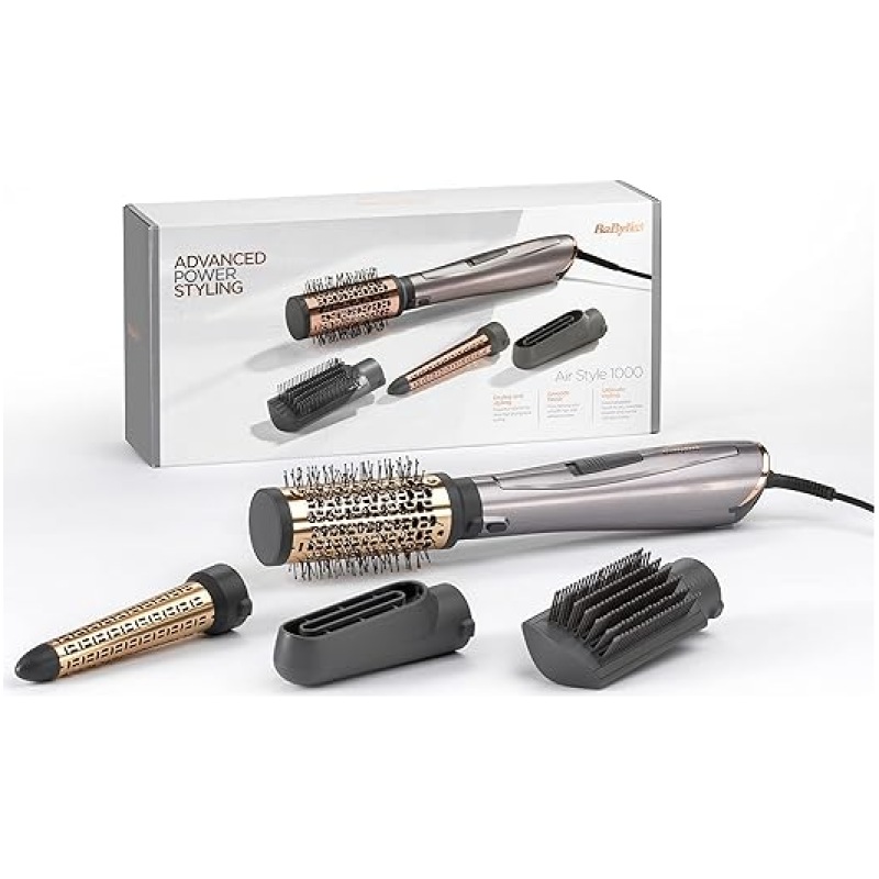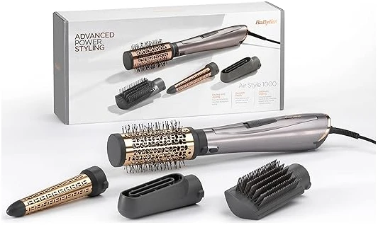 BaByliss Corded Electric Air Styler 1000W, Hair dryer brush, Shape, volume, curl, smooth, dry and style ,1000 watts , Copper, Grey