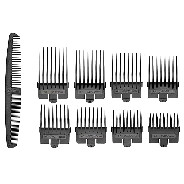 - VERSATILE STYLING OPTIONS — Includes 8 comb guides (grades 1-8), offering cutting lengths from 0.5 mm to grade 8 – perfect for creating a wide variety of hairstyles with professional-looking results