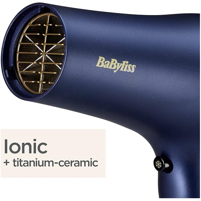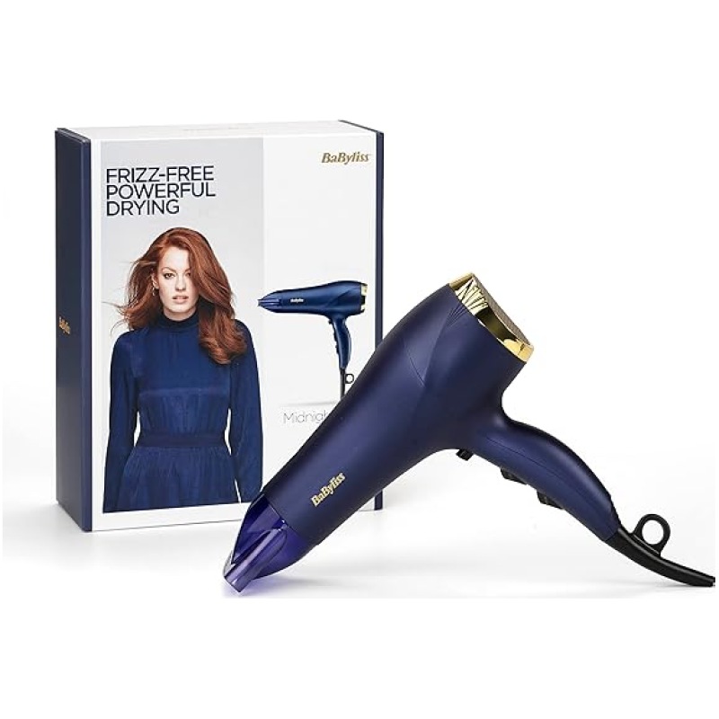 BaByliss Midnight Luxe 2300W Hair Dryer, Ionic Frizz-control, Fast Drying, Professional and Lightweight, 3 heat & 2 speed settings, 5781U