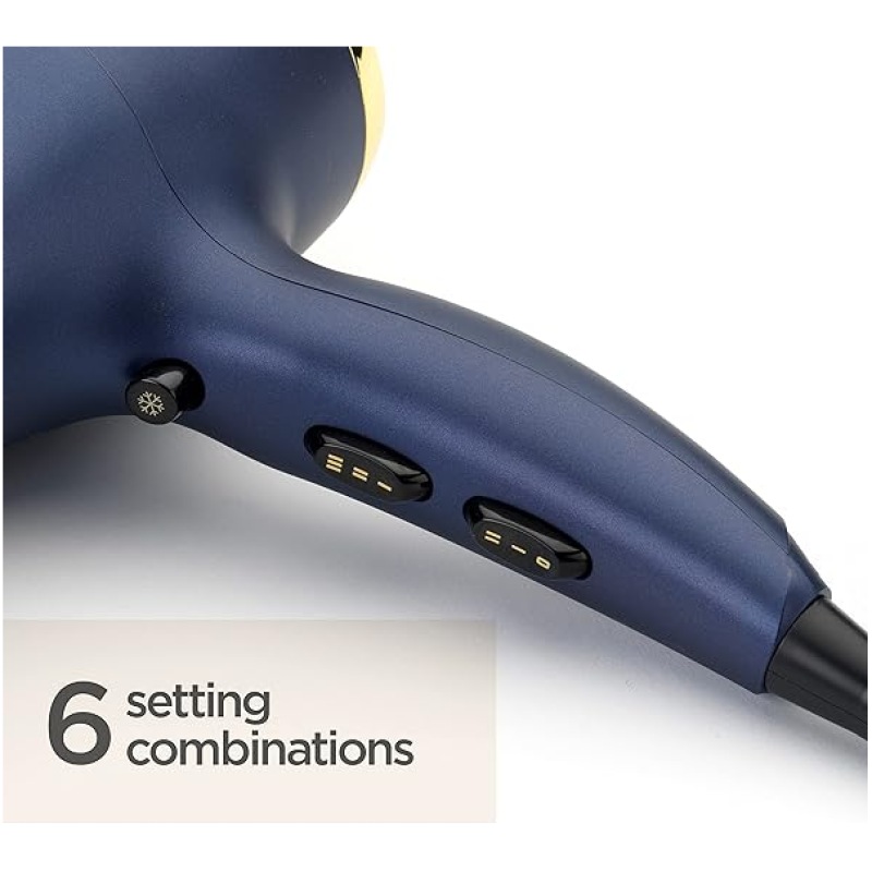 - 3 heat and 2 speed settings and Cool shot for controlled drying