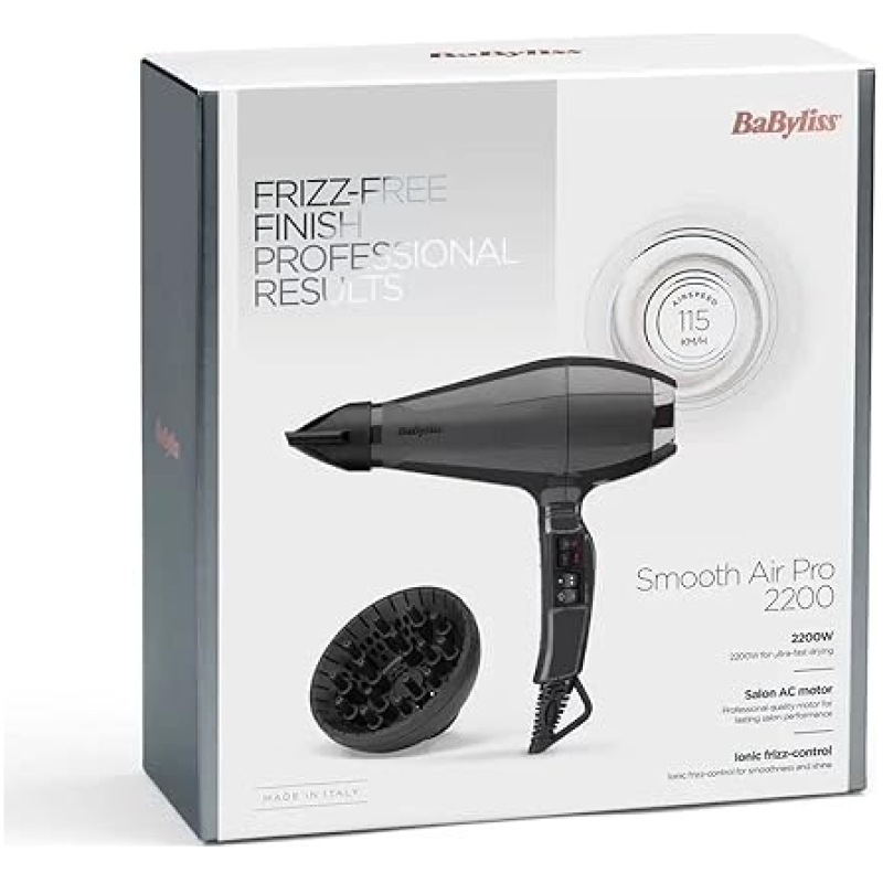 BaByliss Smooth Air Pro 2200W Hair Dryer Black Salon Professional 6719U