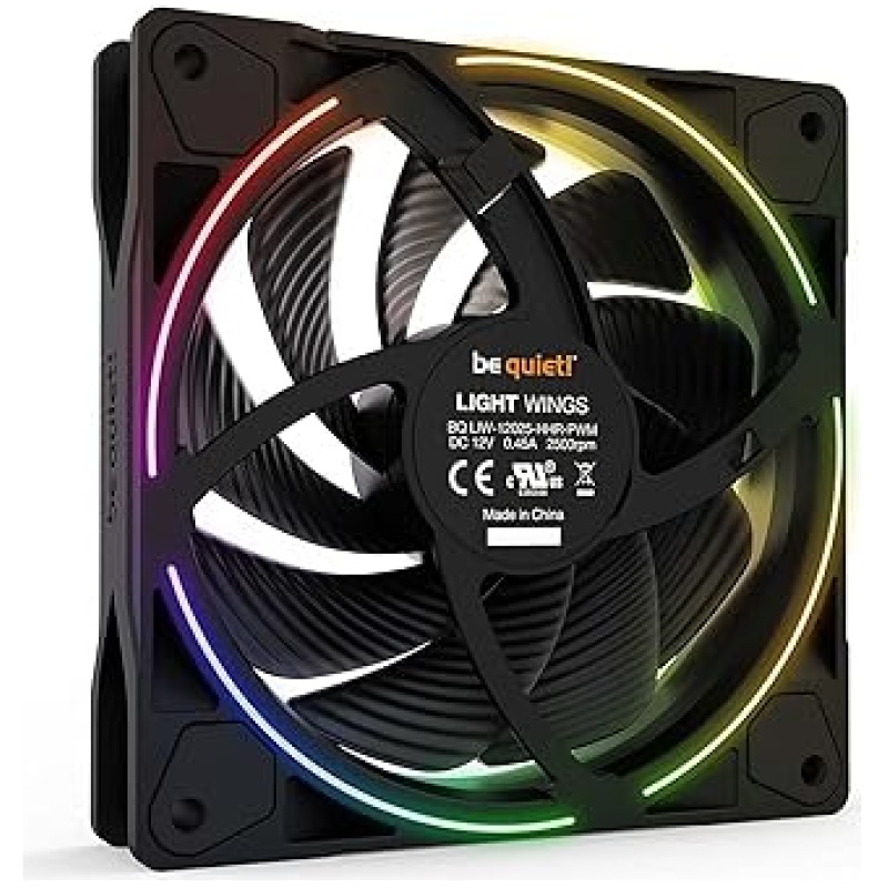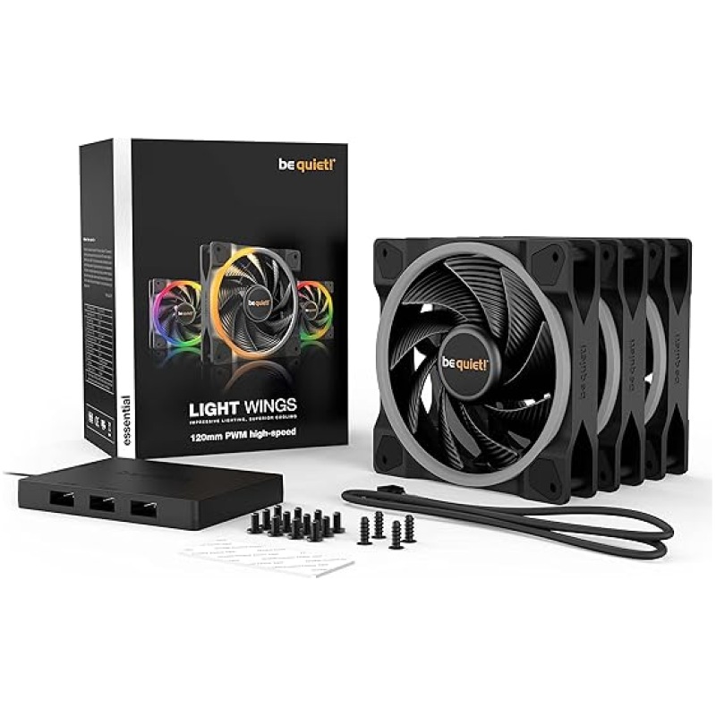 be quiet! (BL077) Light Wings 12cm PWM ARGB High Speed Case Fans x3, Rifle Bearing, 18 LEDs, Front & Rear Lighting, Up to 2500 RPM, ARGB Hub included, black