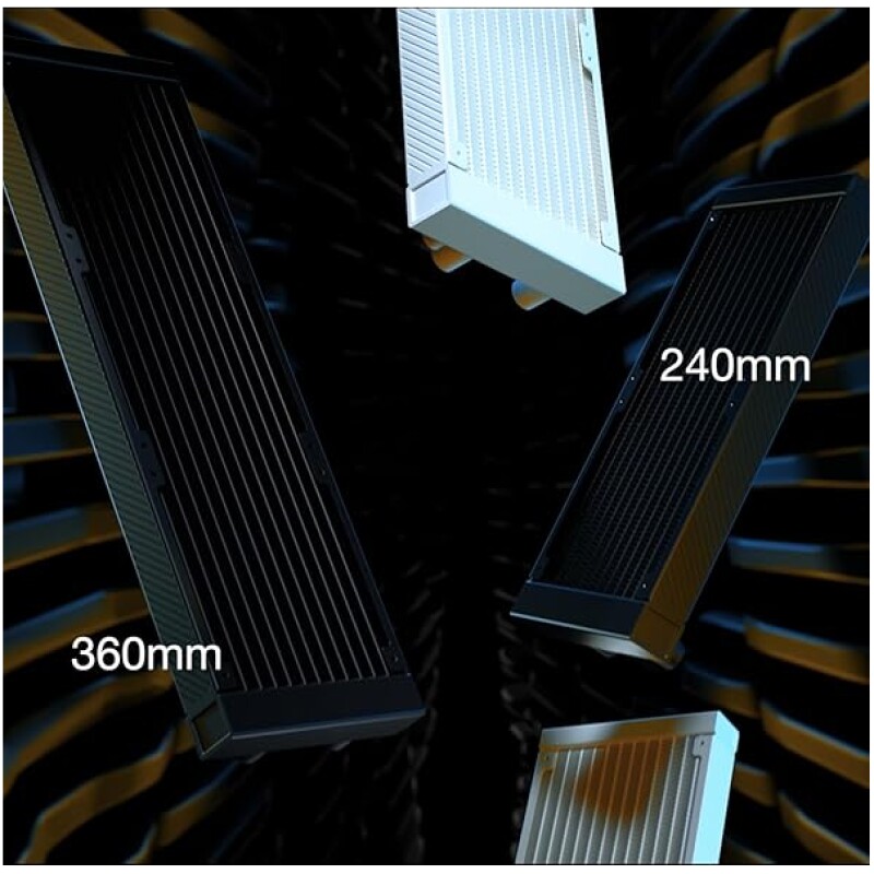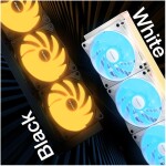 - The Light Loop 240mm White fits perfectly with completely white systems thanks to the uniform white aesthetics. The integrated ARGB LED lighting in the cooling block and the fans puts vivid lighting at the centre of attention.