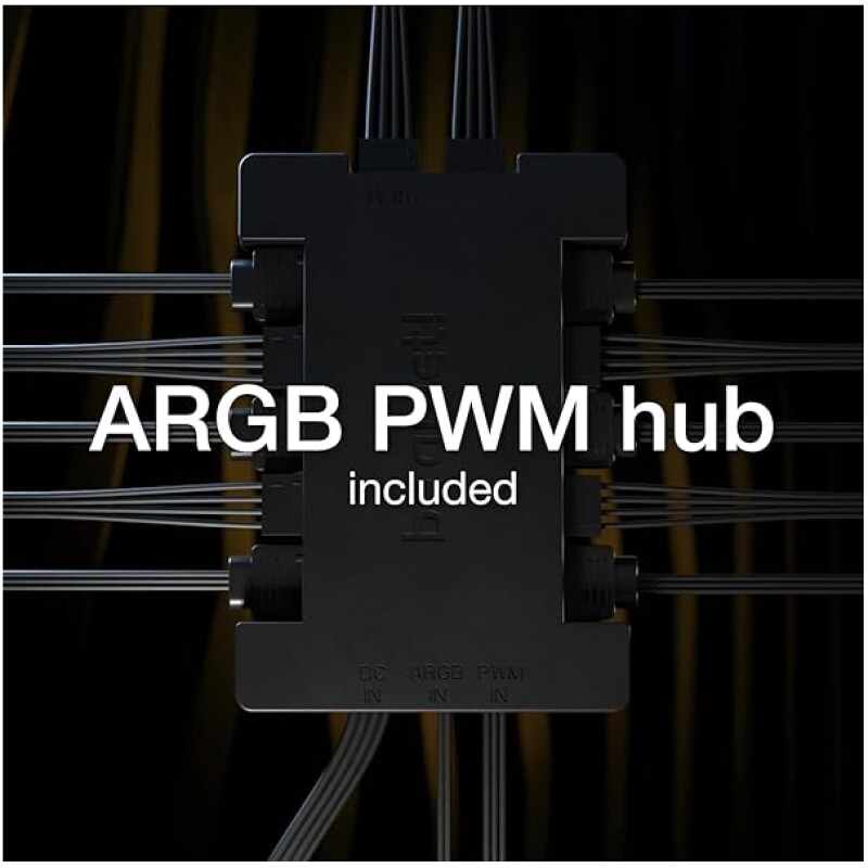 - The ARGB PWM hub allows up to 6 PWM fans to sync and ARGB components. So you can control all your fans and illuminated components with just one PWM and ARGB header on the motherboard. The ARGB PWM hub can be flexibly attached to the housing pads with adhesive tape or screwed into a 2.5″ SSD mount.