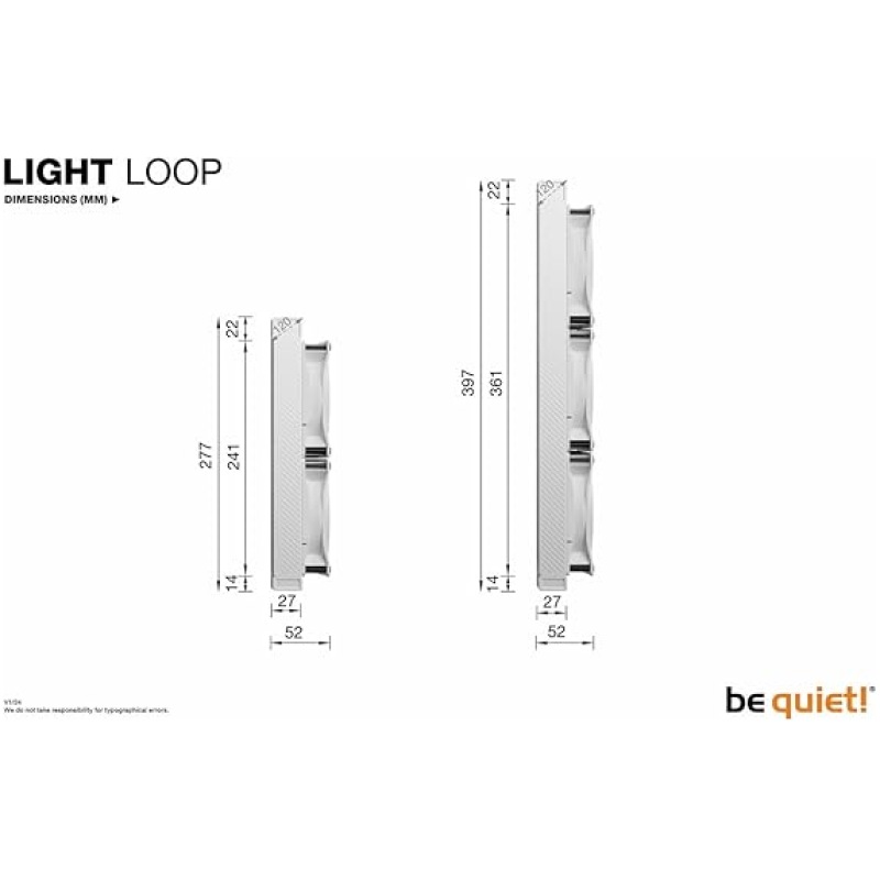 - The Light Loop 360mm White is equipped with 3 Light Wings LX 120mm PWM high-speed White fans. They have 16 LEDs that perfectly illuminate all fan blades and provide the stunning look of the Light Loop 360mm White. The 9 air-flow optimised blades not only reduce noise-causing turbulence: they also ensure that the Light Wings LX 120mm PWM high-speed White deliver the necessary performance in challenging situations.