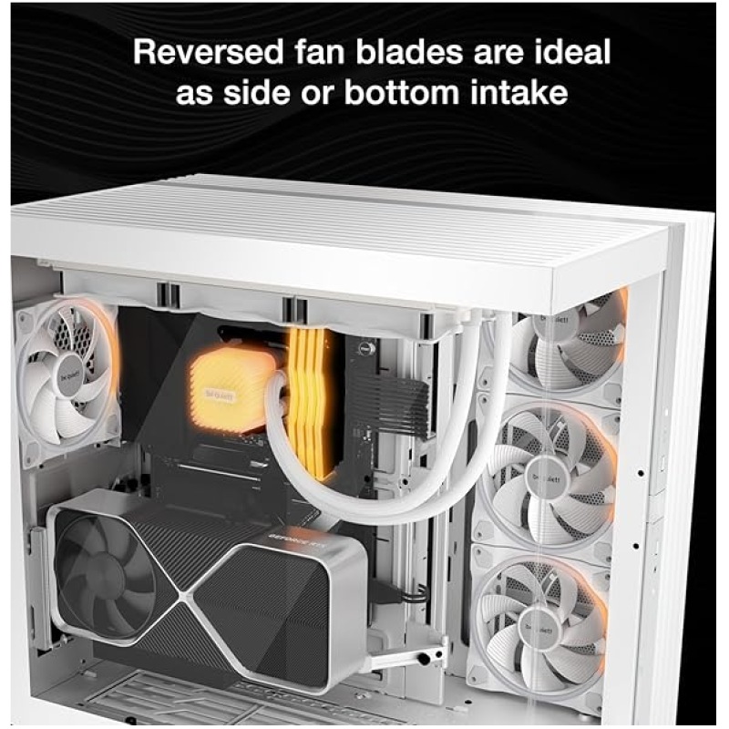 Reversed Blade Design: Optimized for side or bottom intake, ensuring efficient airflow into the case without obstructing visual aesthetics.