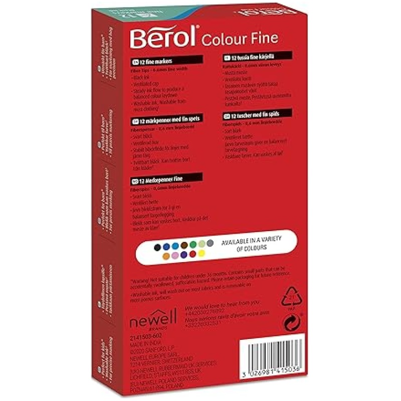 Long lasting fibre tipped pens, particularly suitable for detailed colouring and writing work.