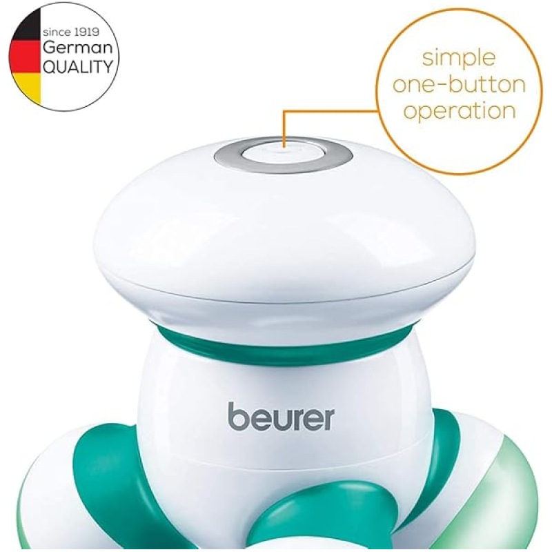 Beurer MG16 Mini Massager – green, Ergonomic hand-held vibration massager, Battery operated for use anywhere, Easy massage application for your neck, back, arms and legs