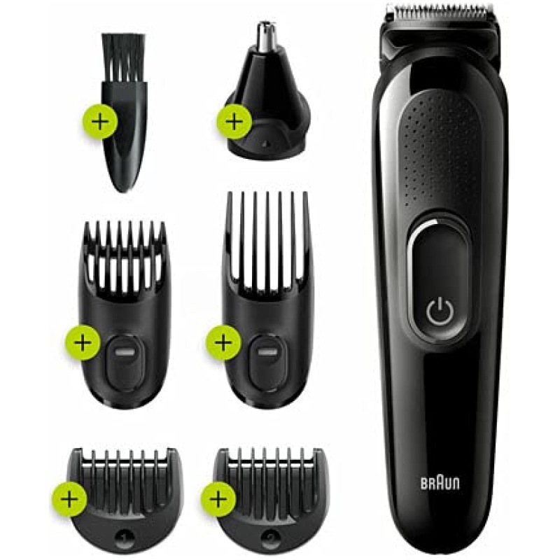 Braun Beard Trimmer MGK3220 And Hair Clipper For Men 6-in-1 Trimmer, 5 Attachments, Body Groomer – Black/Volt Green