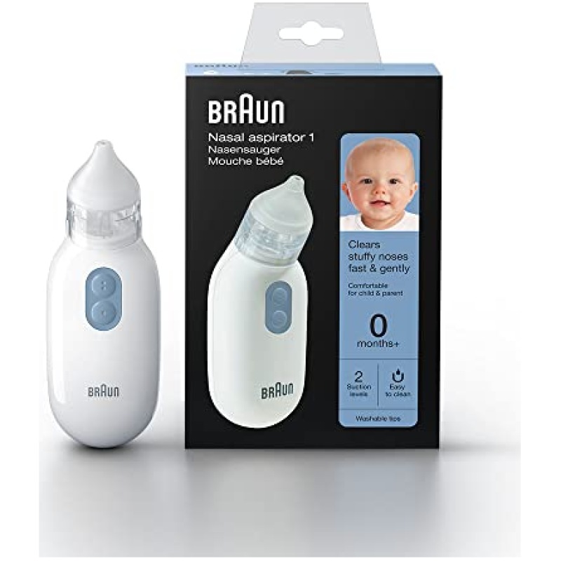Braun Healthcare Nasal Aspirator 1, BNA100EU. Clear stuffy noses quickly & gently. Electric nasal aspirator for all ages 0+, White
