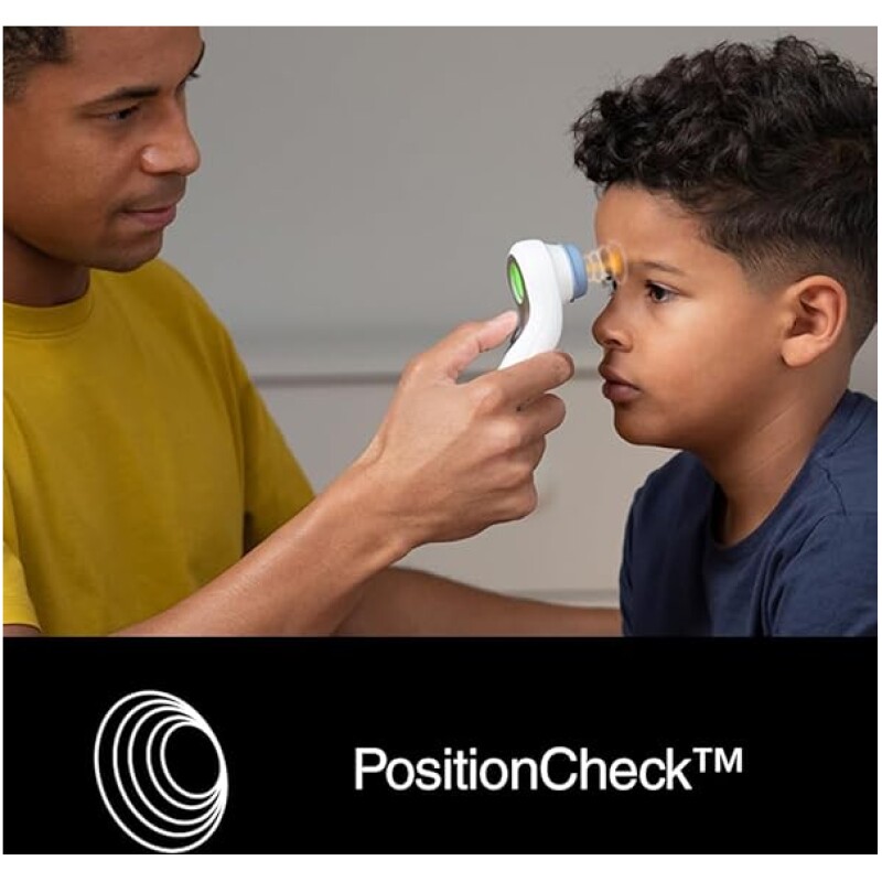 - POSITIONCHECK: Accuracy made easy thanks to Braun’s technology that combines an aiming light, proximity sensor, and on-screen guidance to minimise error and ensure proper positioning of the thermometer