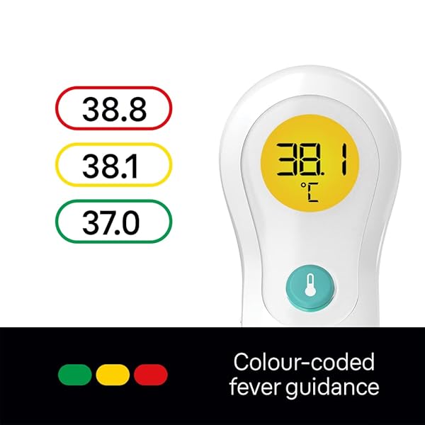 - COLOUR-CODED DIGITAL DISPLAY: Our large, backlit LCD screen provides easy to read colour-coded results – a green screen indicates a normal result, a yellow screen indicates a mild fever is present, and red screen indicates a high fever is present, so you can easily understand results with a quick glance
