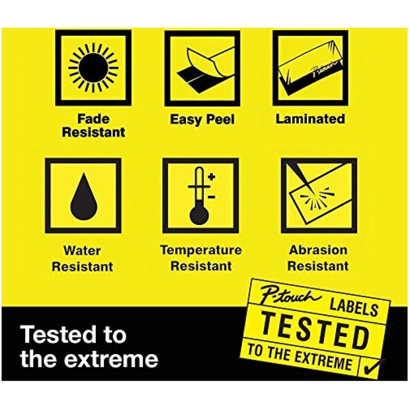 - Features – Only Brother genuine tapes are rigorously tested to be temperature, sunlight, water, fade and abrasion resistant