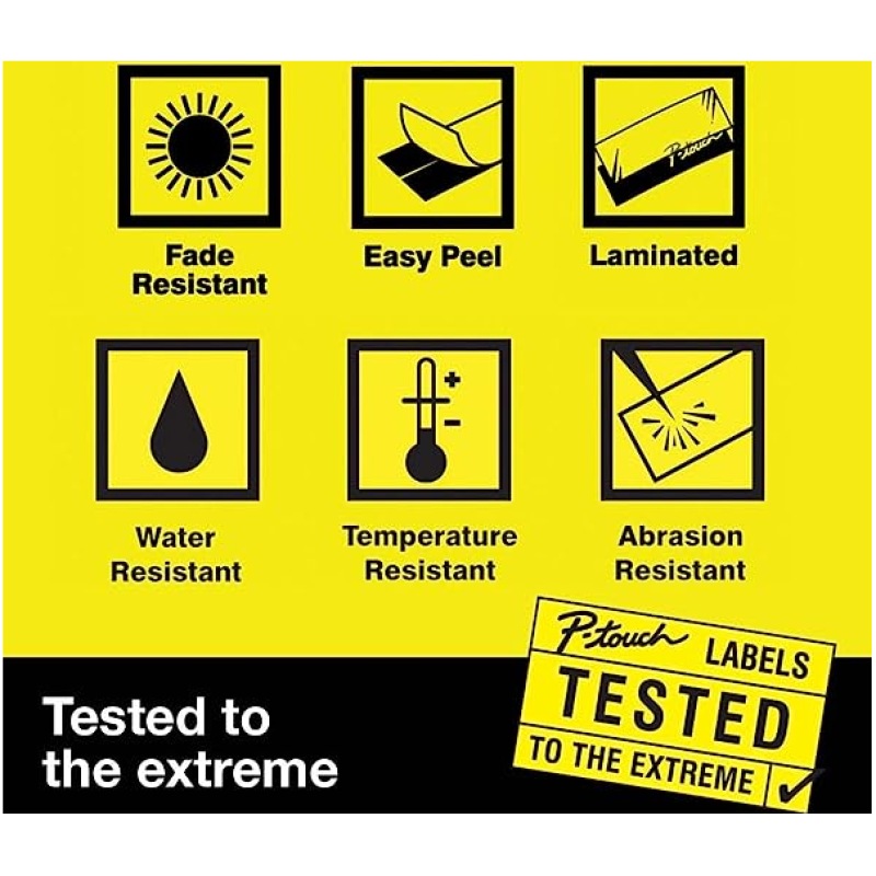 - FEATURES – Only Brother genuine tapes are rigorously tested to be temperature, sunlight, water, fade and abrasion resistant