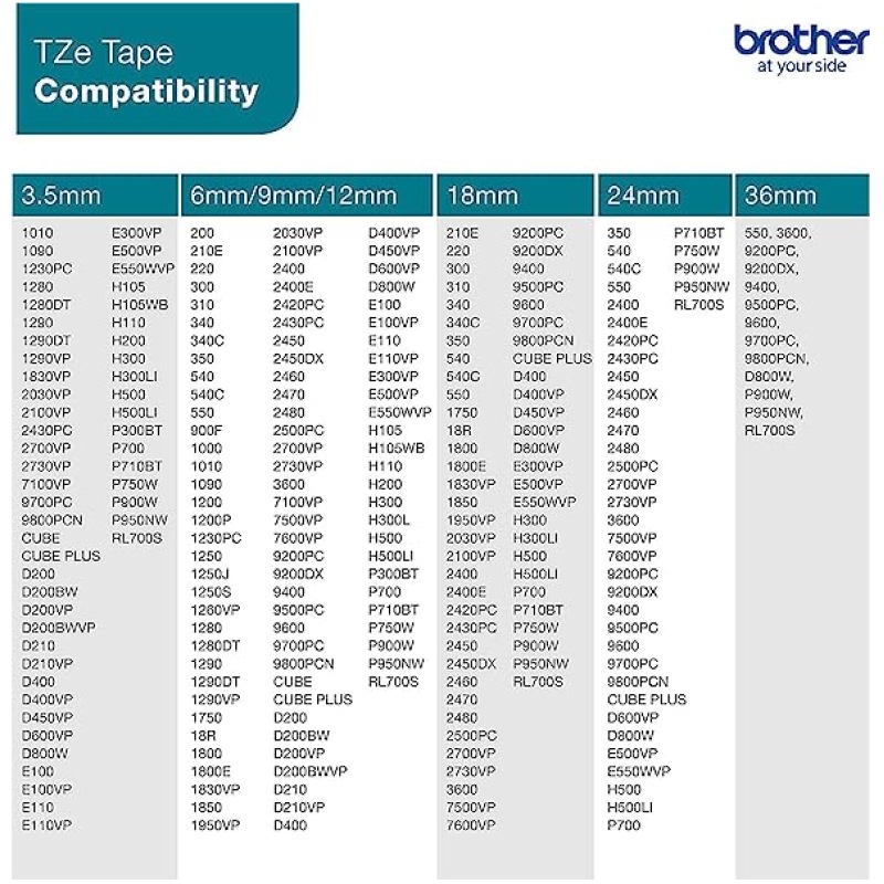 - COMPATIBILITY – Compatible with P-touch label printers that show the TZ or TZe logo on the tape cassette cover