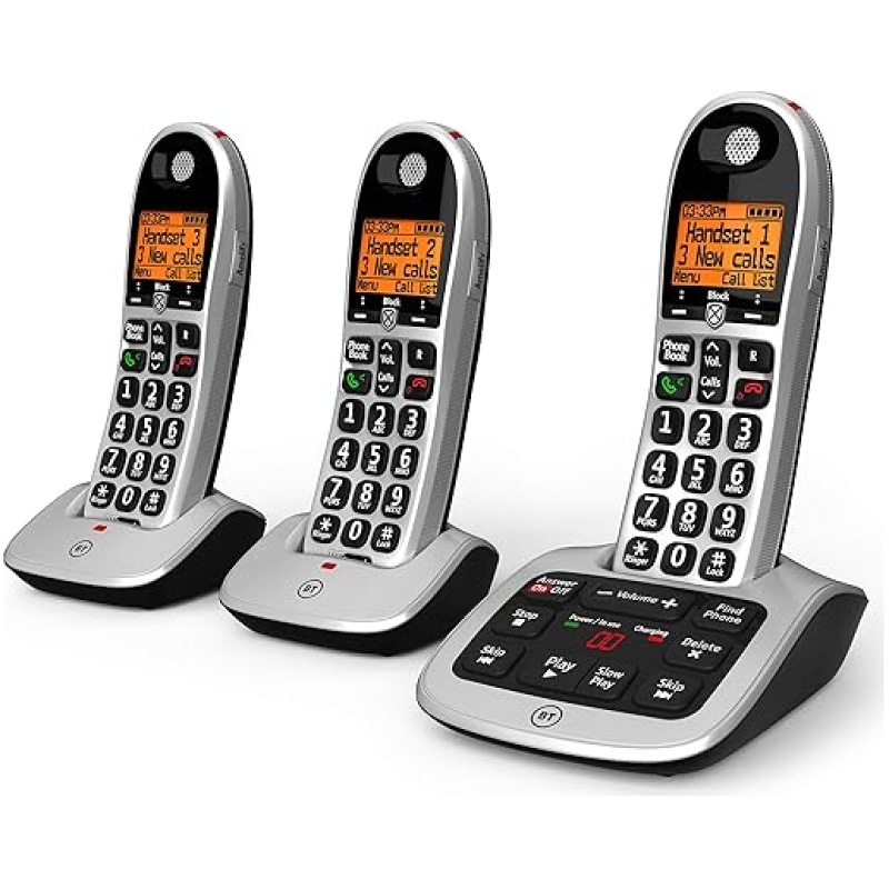 BT 4600 Cordless Landline House Phone, Home Phone, Big Buttons, Advanced Nuisance Call Blocker, Answer Machine, Trio Handset Pack
