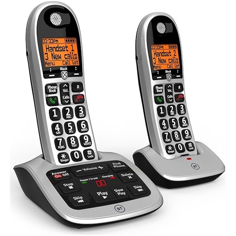 BT 4600 Cordless Landline House Phone, Home Phone, Big Buttons, Advanced Nuisance Call Blocker, Answer Machine, Twin Handset Pack