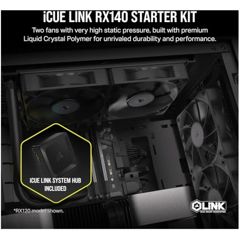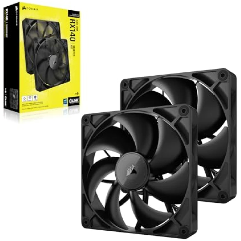 Corsair iCUE LINK RX140 140mm PWM Fans with iCUE LINK System Hub – Magnetic Dome Bearing – Dual Pack – Black