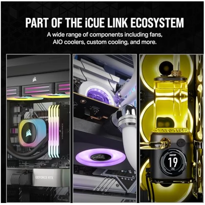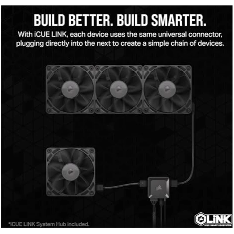 • LINK Your Fans Together: The included iCUE LINK bridge connectors can connect your fans directly to each other, creating a seamless bank of fans all connected to the iCUE LINK System Hub with just a single cable.