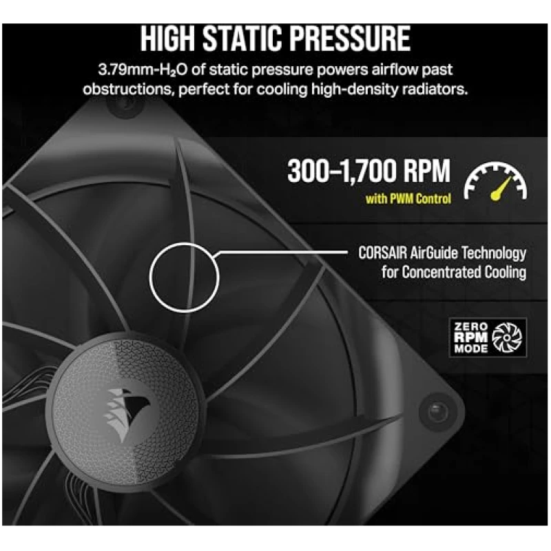 • CORSAIR AirGuide Technology: Anti-vortex vanes direct airflow at your hottest components for concentrated cooling, pushing air in the direction you need when mounted to a radiator or heatsink.
