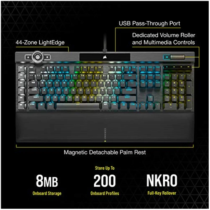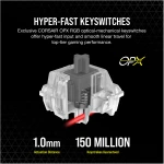 - Exclusive CORSAIR OPX RGB Optical-Mechanical Keyswitches: Hyper-fast input with 1.0 mm actuation distance and smooth linear travel, guaranteed for 150 million keystrokes and keypresses up to 4x faster