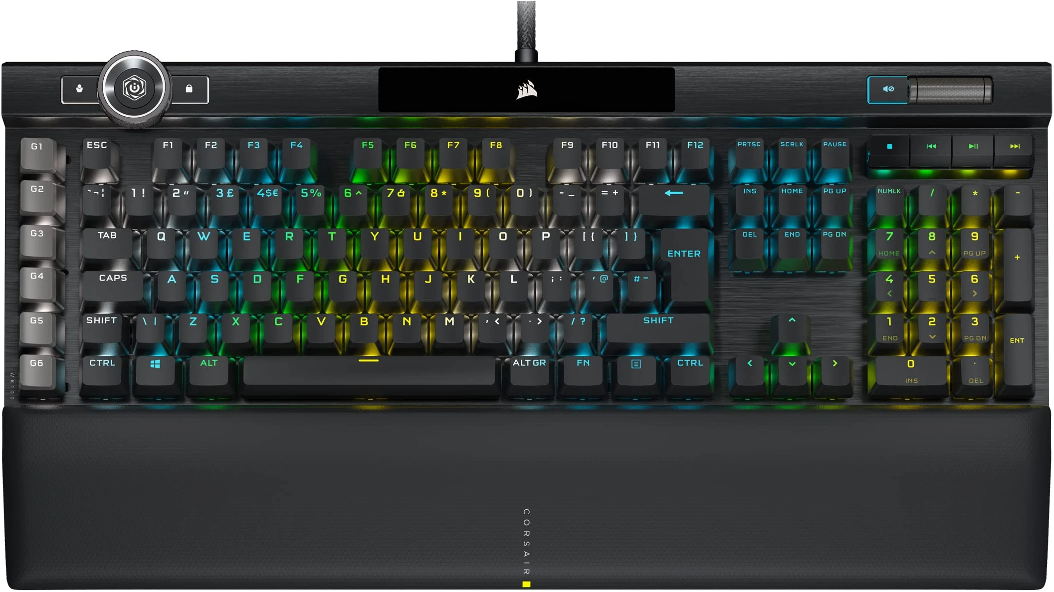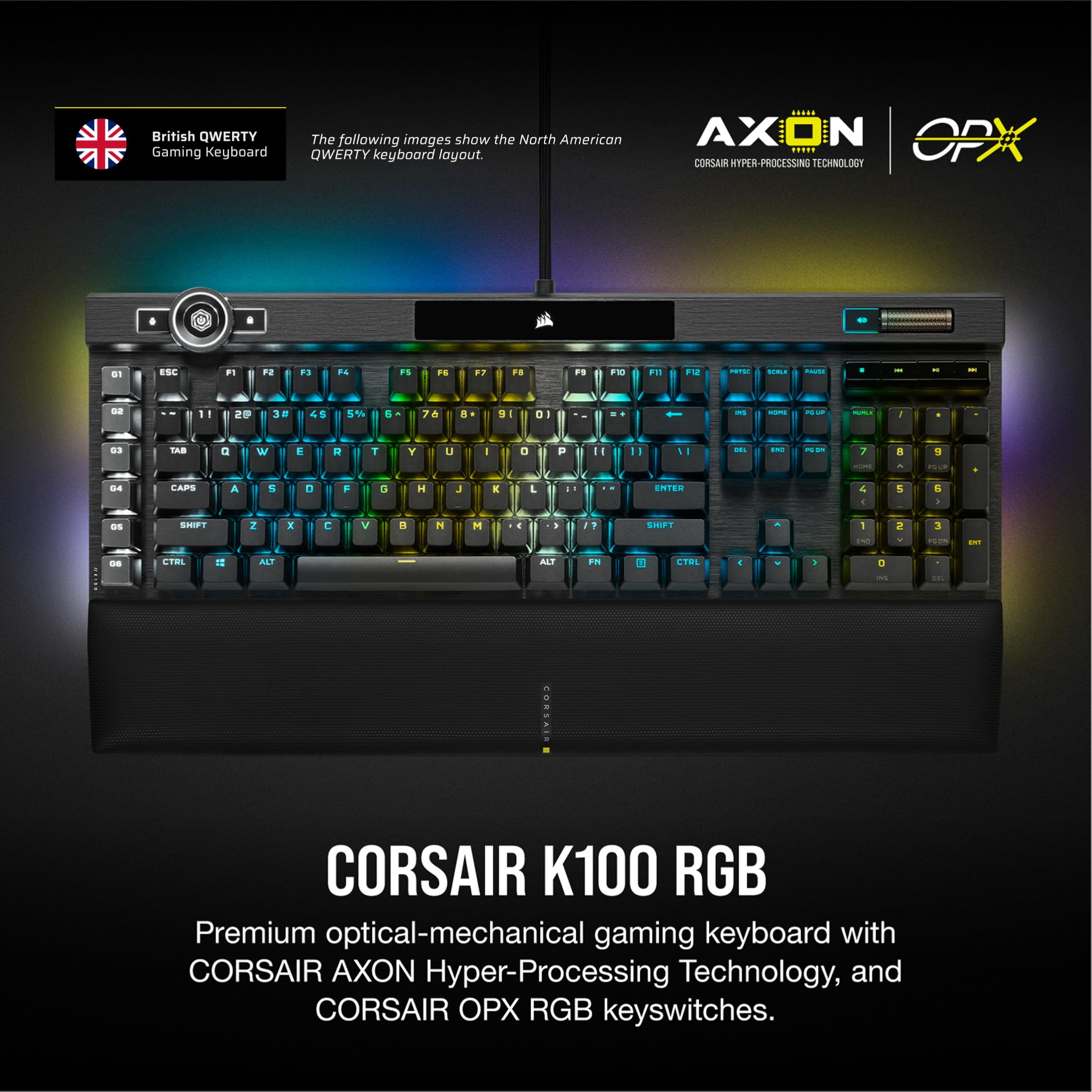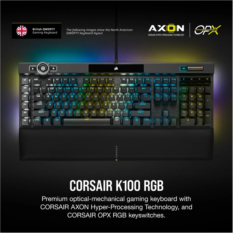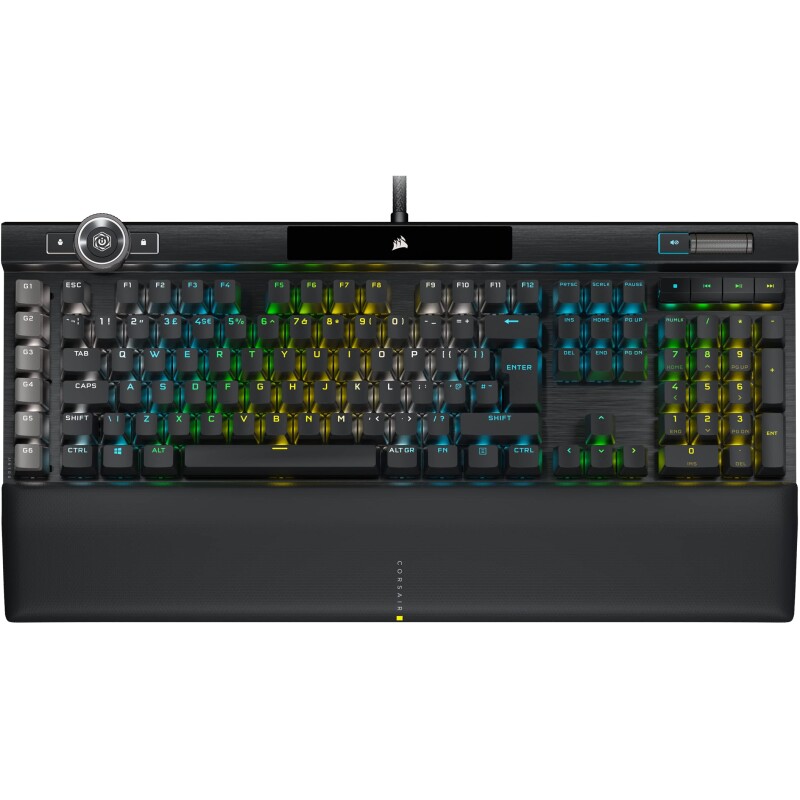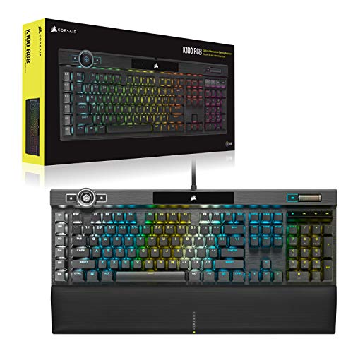 Corsair K100 RGB Optical-Mechanical Gaming Keyboard OPX Keyswitches: Hyper-fast & Linear, Leatherette Palm Rest, PBT Double-Shot Keycaps, Elgato Stream Deck Integration QWERTY, Black