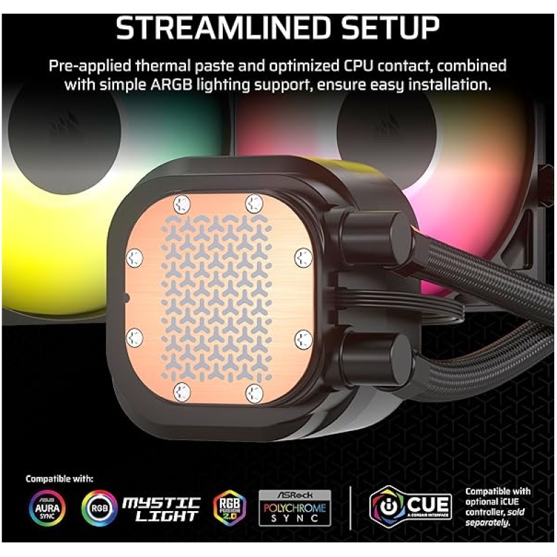 - Simple, High-Performance All-in-One CPU Cooling: Renowned CORSAIR engineering delivers strong, low-noise cooling that helps your CPU reach its full potential