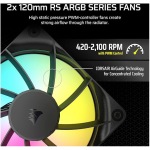 - RS120 ARGB Fans: RS ARGB fans create strong airflow and high static pressure, with easy ARGB control via a compatible motherboard. CORSAIR AirGuide technology and Magnetic Dome bearings ensure great cooling performance and low noise