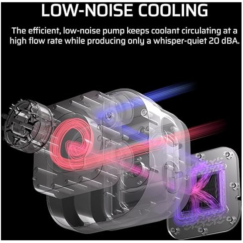- Efficient, Low-Noise Pump: Keeps your coolant circulating at a high flow rate while generating a whisper-quiet 20 dBA