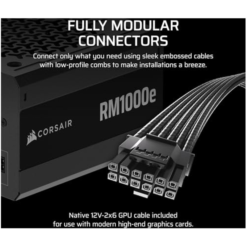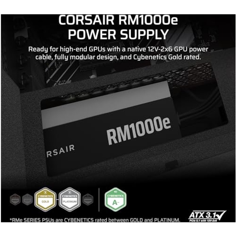 CORSAIR RM1000e (2025) Fully Modular Low-Noise ATX Power Supply with 12V-2×6 Cable ? ATX 3.1 & PCIe 5.1 Compliant, Cybenetics Gold Efficiency, 105?C-Rated Capacitors, Modern Standby Mode ? Black
