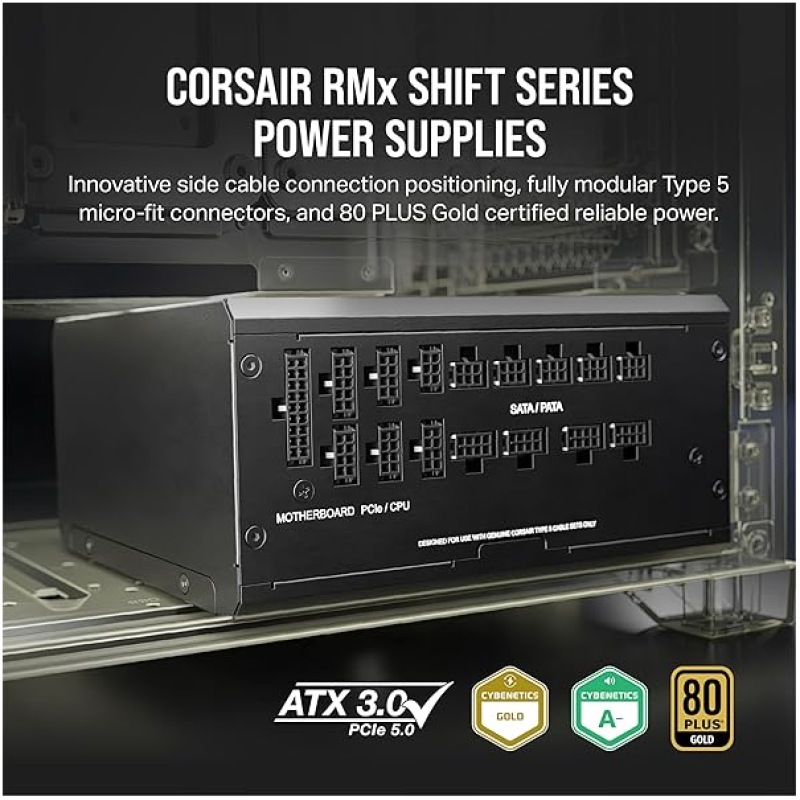 Corsair RM1200x SHIFT Fully Modular ATX Power Supply – Modular Side Interface – ATX 3.1 & PCIe 5.1 Compliant – Zero RPM Fan Mode – 105?C-Rated Capacitors – 80 PLUS Gold Efficiency – Black