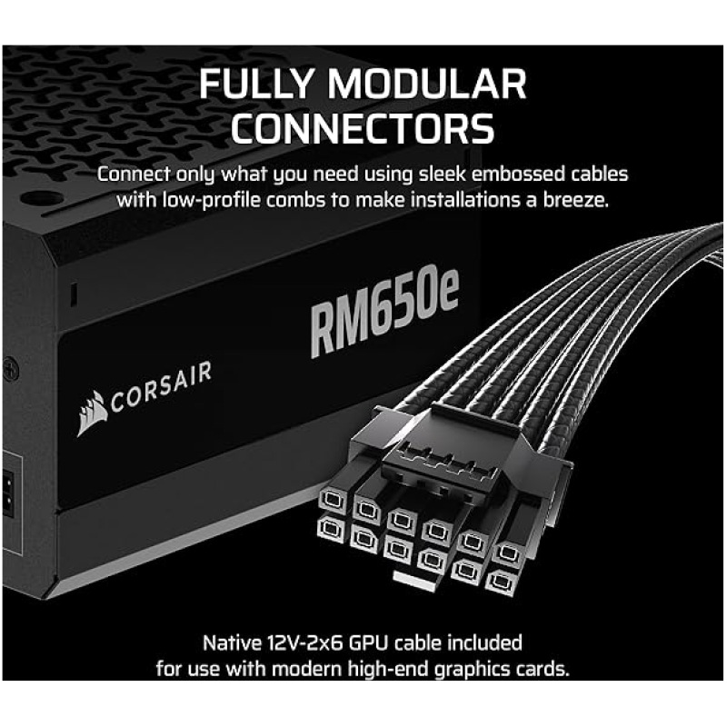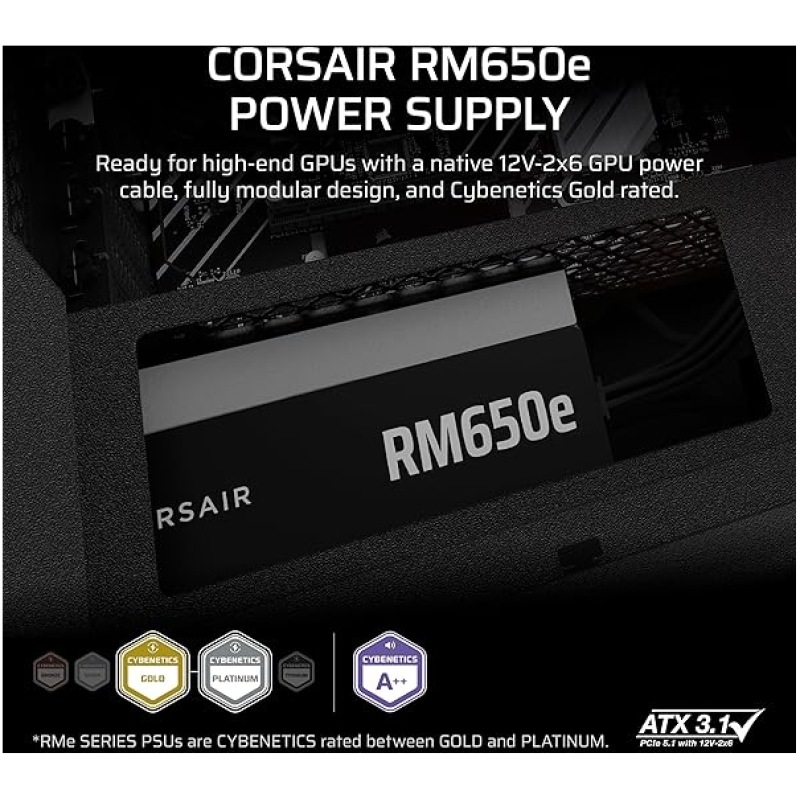 CORSAIR RM650e (2025) Fully Modular Low-Noise ATX Power Supply with 12V-2×6 Cable ? ATX 3.1 & PCIe 5.1 Compliant, Cybenetics Gold Efficiency, 105?C-Rated Capacitors, Modern Standby Mode ? Black