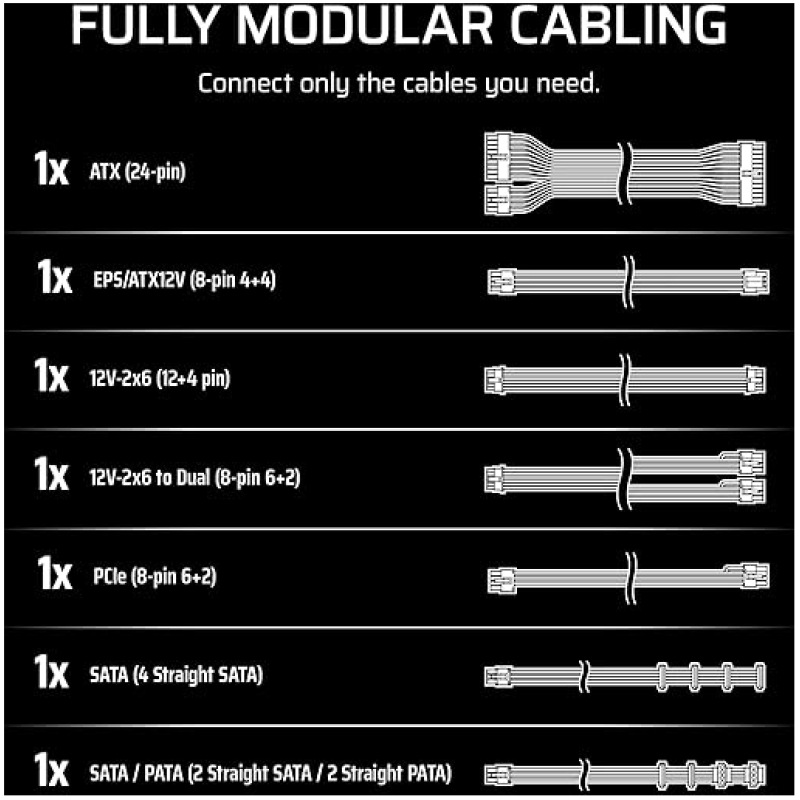 - Fully Modular PSU: Reliable and efficient, low-noise power supply with fully modular cabling, so you only have to connect the cables your system build needs.