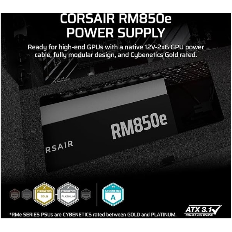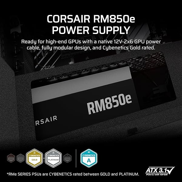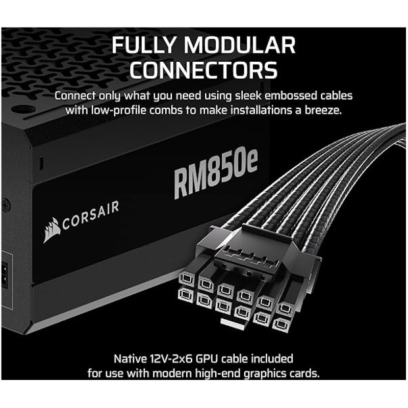 CORSAIR RM850e (2025) Fully Modular Low-Noise ATX Power Supply with 12V-2×6 Cable ? ATX 3.1 & PCIe 5.1 Compliant, Cybenetics Gold Efficiency, 105?C-Rated Capacitors, Modern Standby Mode ? Black