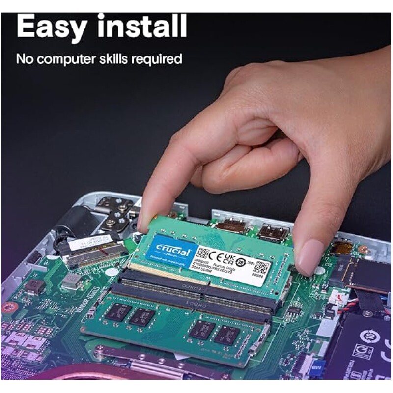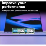 - ECC Type=Non-ECC, Form Factor=SODIMM, Pin Count=260 Pins, PC Speed=PC4-25600, Voltage=1.2V, Rank and Configuration=1Rx16, 1Rx8 or 2Rx8