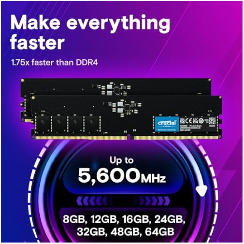 - BOOST PERFORMANCE: Crucial DDR5 Memory offers 50% more data transfer than DDR4, resulting in faster load times, file transfers, downloads, refresh rates, and reduced lag
