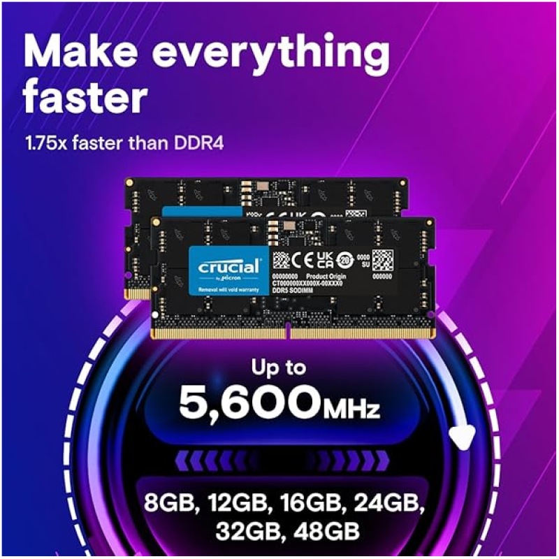 Crucial DDR5 RAM 8GB 4800MHz SODIMM CL40, Laptop Computer Memory, Mini PC, High Performance RAM – CT8G48C40S5