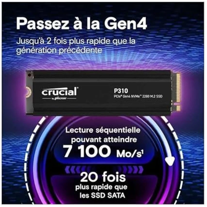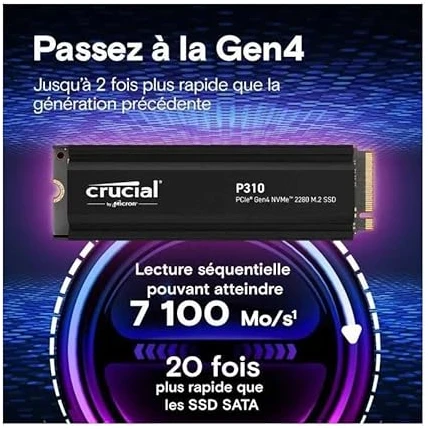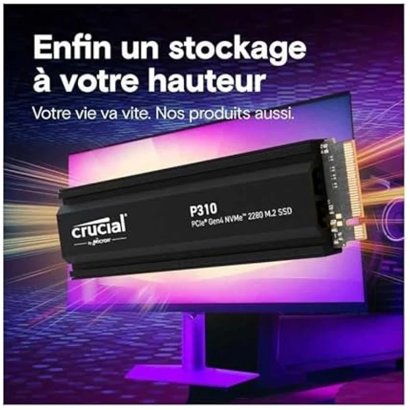 Crucial P310 – SSD – 1TB – Internal – M.2 2280 – PCIe 4.0 x4 (NVMe) – Integrated Heatsink