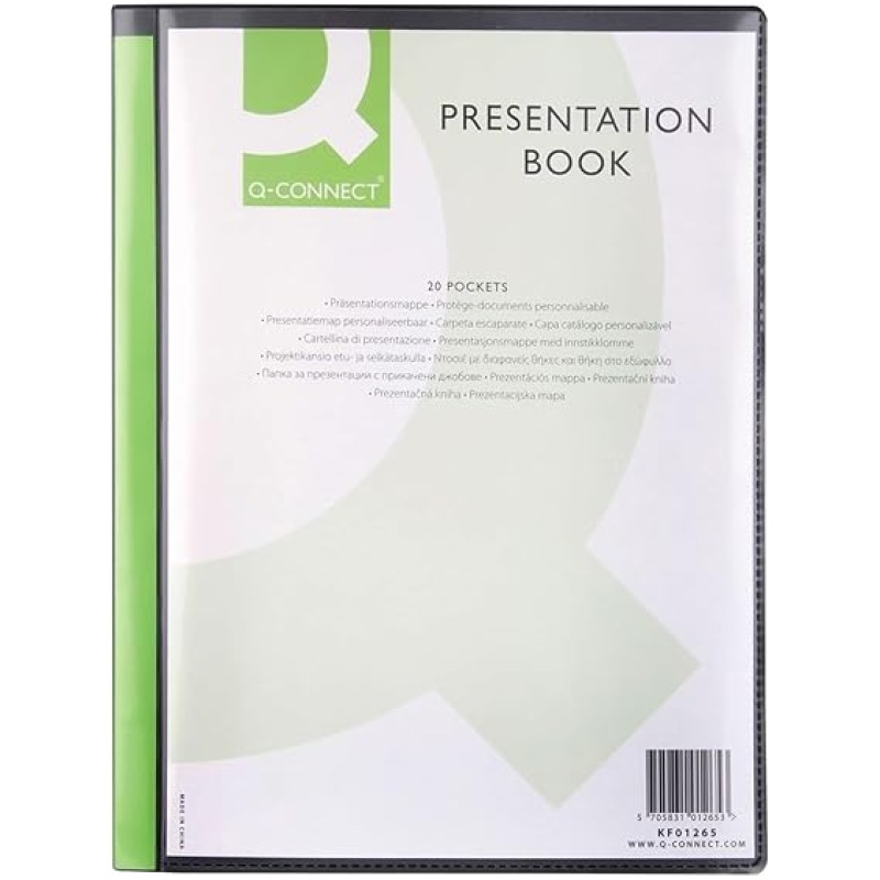 Display Book Q-CONNECT with Front Cover Pocket PP A4 460 Micron 20 Pockets Black/Document Archiving/Type-20 Pockets/Kind-with a Pocket/Index-N.a. / Pockets-N/D/Material-PP/Dividers-N.a.