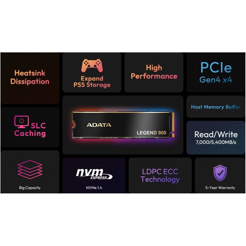 The LEGEND series of solid-state hard drives are constructed with carefully selected high-quality components which can withstand the test of time. Rigorously verified and tested, the LEGEND 900 comes with a 5-year warranty to provide you with peace of mind!